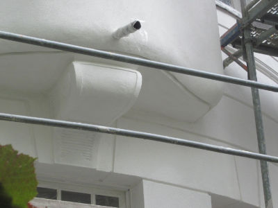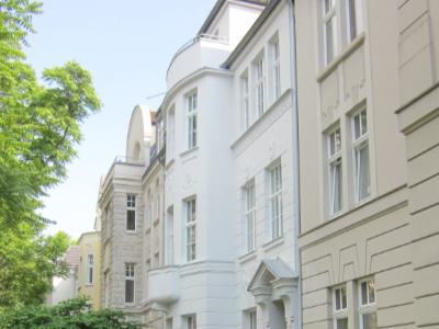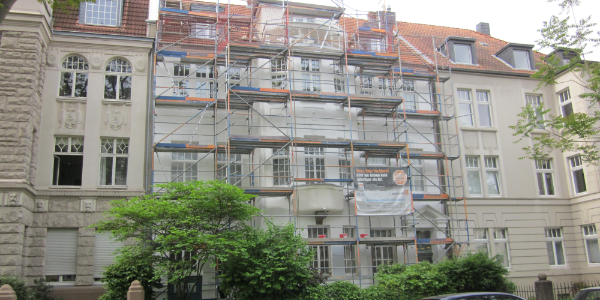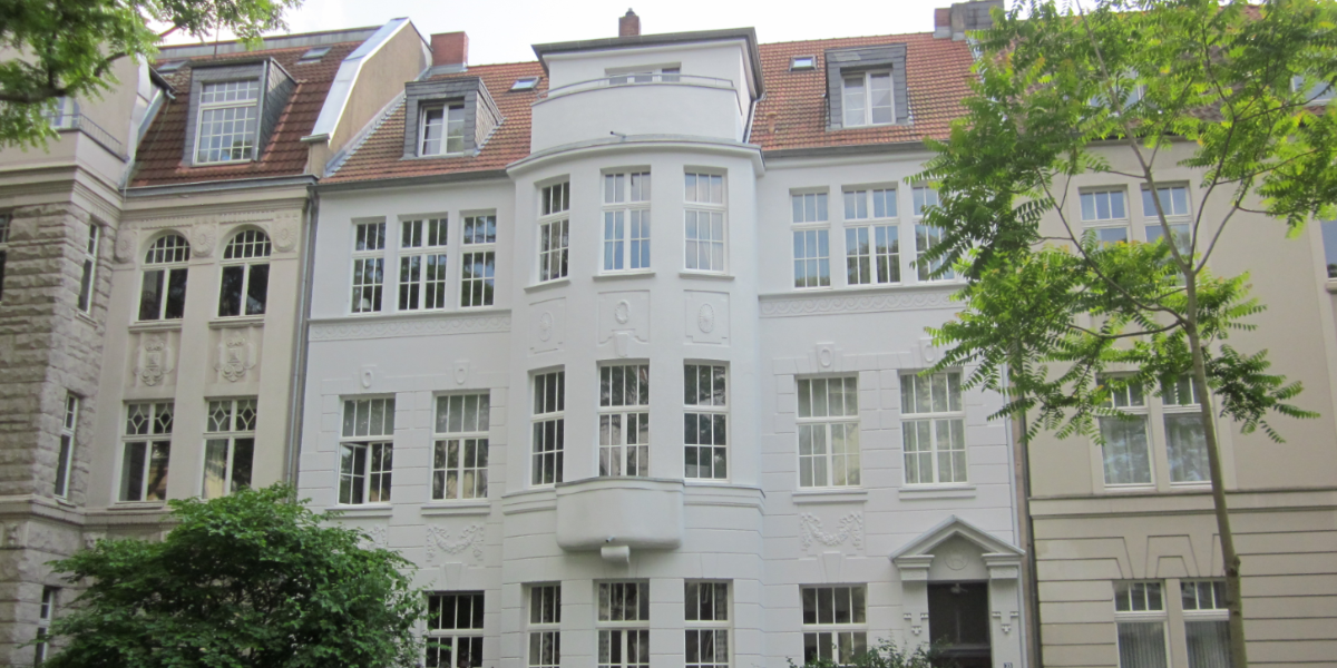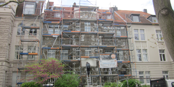 Die Fassade des denkmalgeschützten Mehrfamilienhauses in Köln Neu-Ehrenfeld wurde von der alten Beschichtung befreit, gereinigt, Putzschäden fachgerecht repariert und in Abstimmung mit der Denkmalpflege neu gestrichen. Die Fenster wurden überarbeitet und die Erkerbalkone neu abgedichtet.