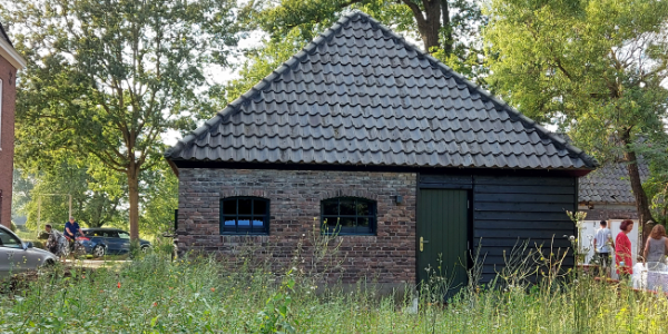 Der L-förmige Ziegelbau wurde seit längerer Zeit nur als Lager genutzt und 2020 zu einem Kulturraum umgebaut. Der Veranstaltungsraum wird als Kleinkunstbühne mit festem Figurentheater und als barrierefreie Dependance des Schlösschen Borghees für Workshops, Konzerte und Präsentationen genutzt. Der Boden, das Dach und die salzbelasteten Wände des alten Stalls wurden abgebrochen, nur die Schlösschen- und straßenseitige Ziegelaußenwand konnte erhalten werden. Die alten Hohlziegel sind vor den Abbrucharbeiten gesichert und eingelagert worden und konnten zu einem großen Teil wiederverwendet werden. Das hat nicht nur erhebliche Kosten eingespart, sondern auch großen Anteil an der Anmutung des fertigen Gebäudes. Die neuen Außenwände erhielten eine schwarze sägeraue Stulpholzschalung wie sie bei landwirtschaftlichen Gebäuden häufig verbaut ist und die einen gestalterischen Bezug zur Umgebung und der ehemaligen Nutzung hat.
